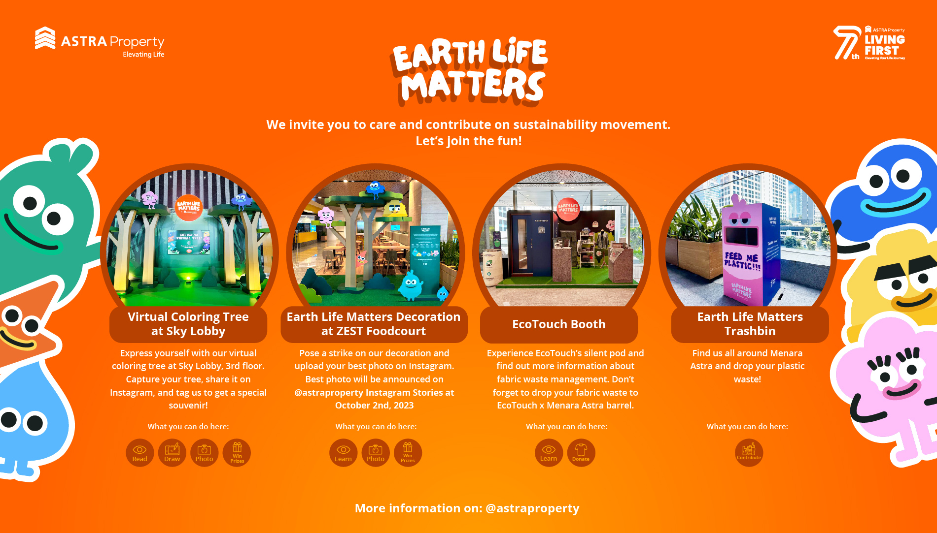 Dalam rangkaian hari ulang tahun ke-7 Astra Property Living First 2023 yang mengusung tema ‘Elevating Your Life Journey’, Astra Property menghadirkan program kampanye ESG (Environmental, Social & Governance) dengan tajuk ‘Earth Life Matters’